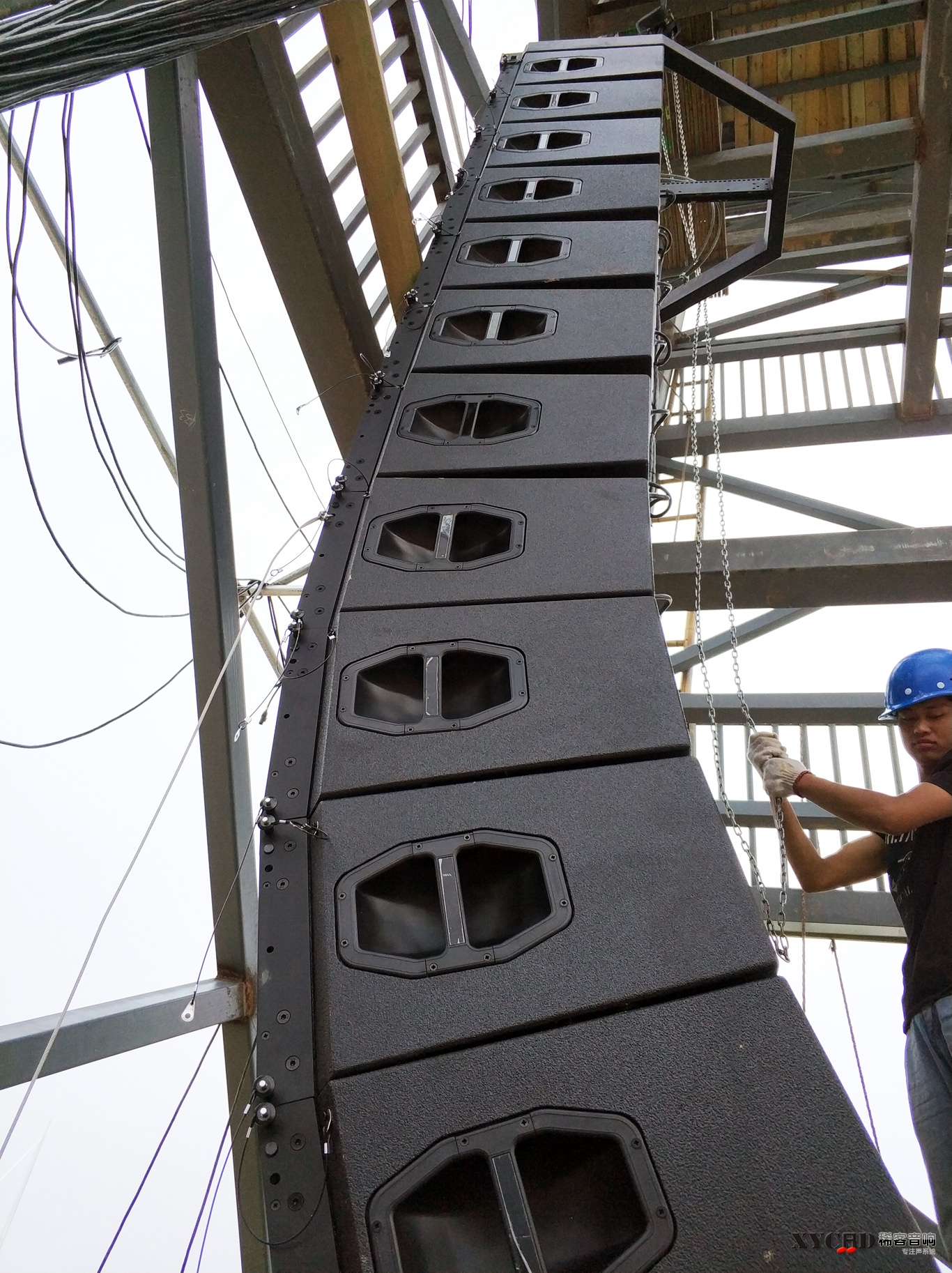稀客大型户外防水线阵列系统经得起大型水秀喷泉的考验,喷泉水雾很大,环境潮湿。整个表演区域面积大,左右两个扩声塔跨度远,控制机房与表演舞台距离长,系统信号采用网络光纤传输,保证整个系统的安全稳定,达到整个扩声系统的演出效果,让整个系统更加的便捷、先进。