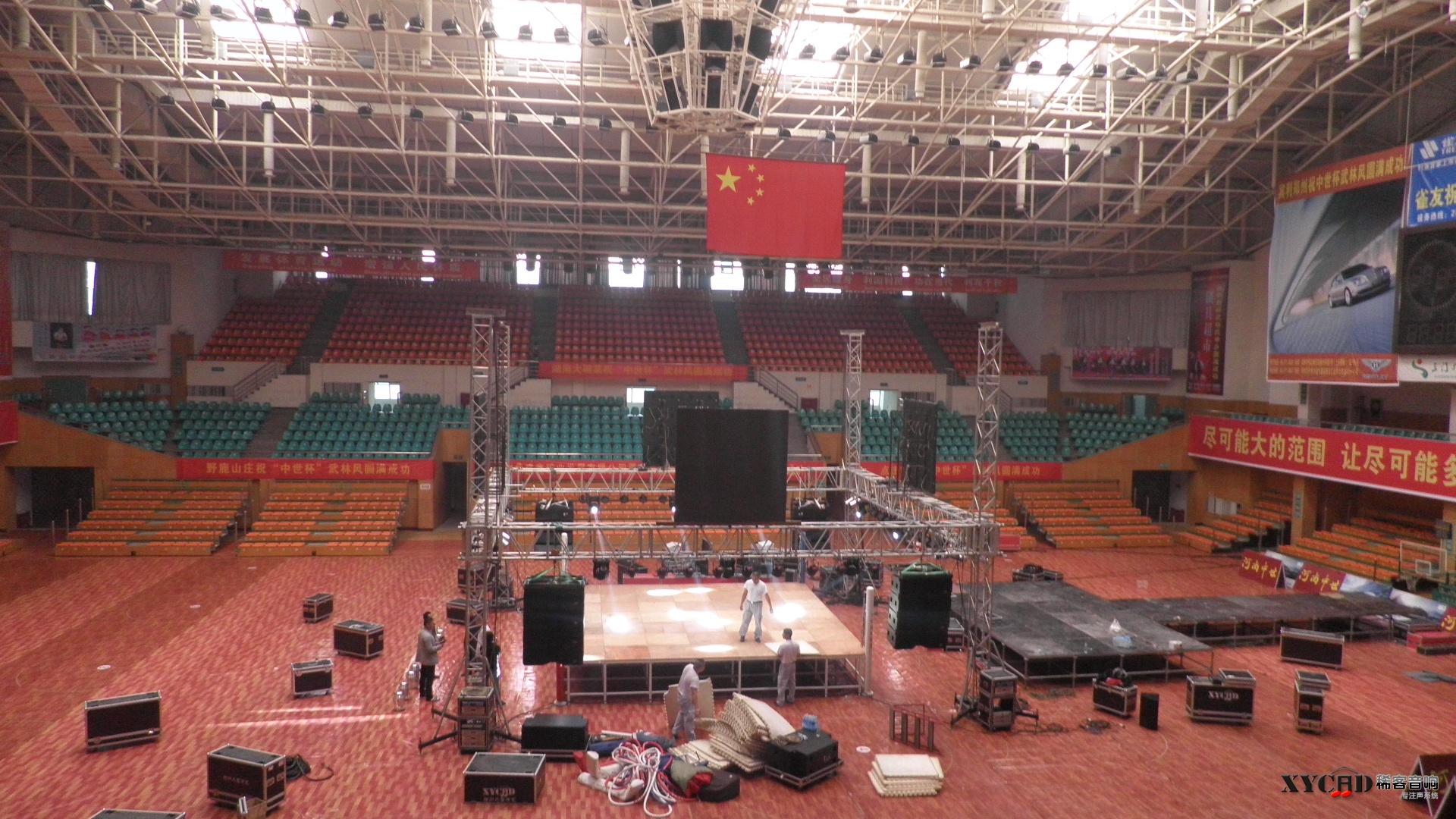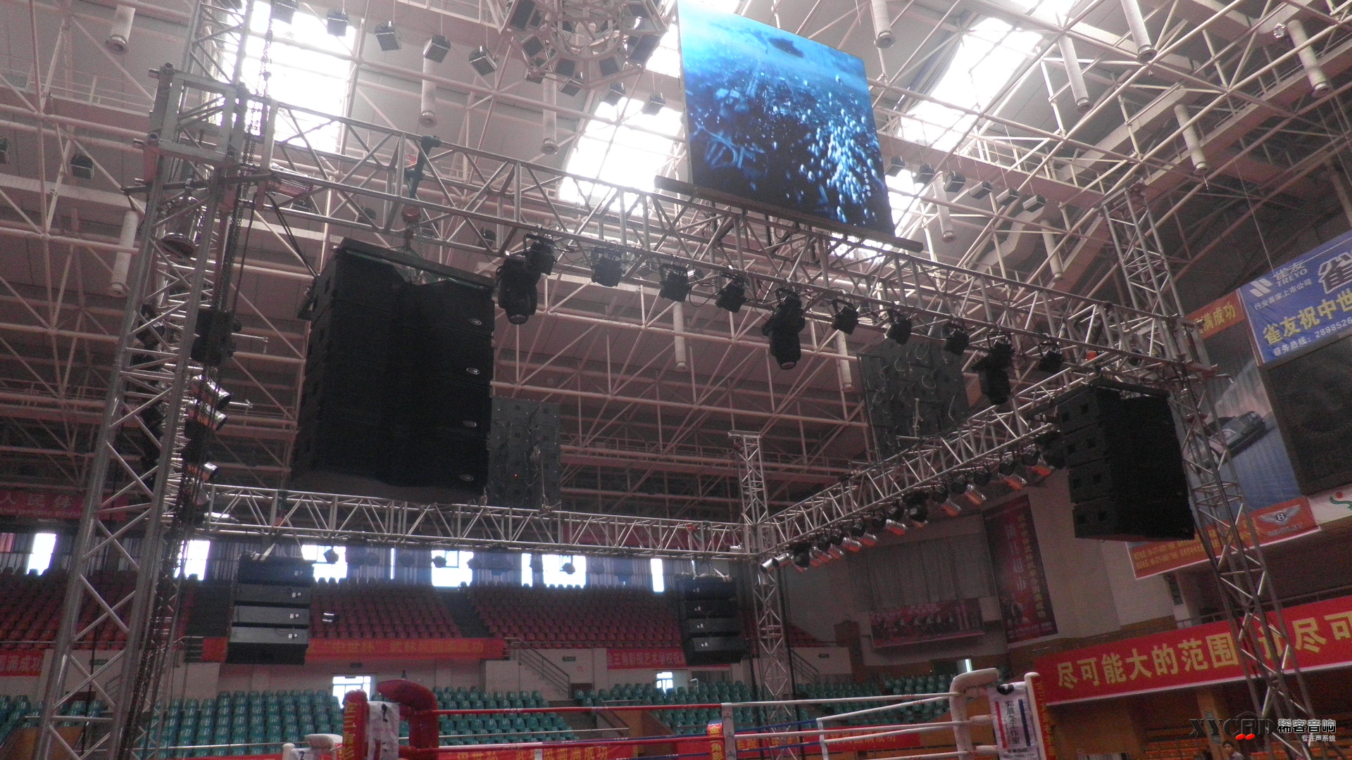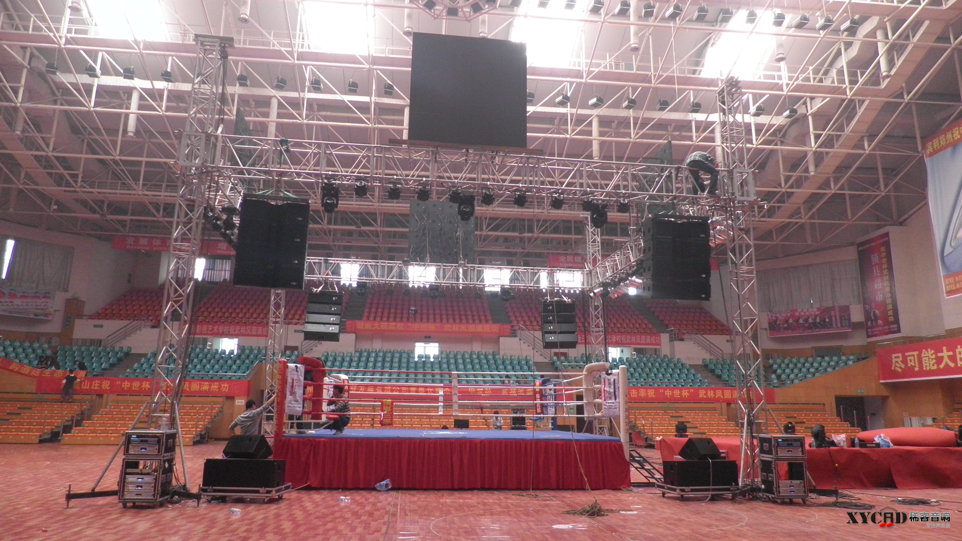 2013年“武林风中外明星拳王争霸赛”在全国各个城市拉开帷幕,争霸赛选用我公司LA-3212大型线阵现场扩声。LA-3212是我公司最具代表性的一款大型线阵,其音色正、动态大、覆盖角度精准、稳定性极佳,赛事现场掌声阵阵,高潮跌起。LA-3212以其完美的表现赢得了主办方的一致好评。