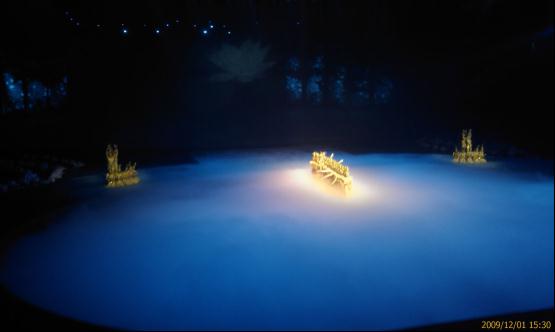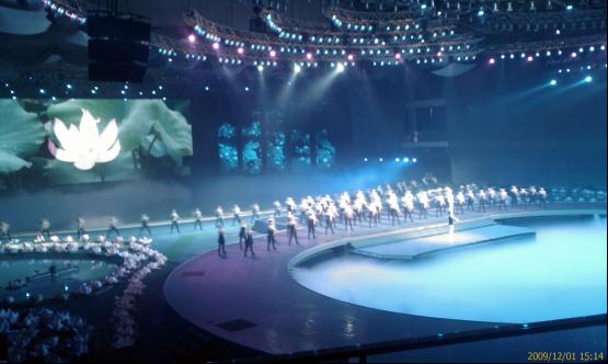 “ 圣水观音”由奥运会开幕式副总导演张继刚指导,耗时两年,投资8000多万精心打造。是亚洲最大的10000平米的多维演艺。整个剧情以观音的形象贯穿始终,通过各种舞蹈造型及情景表演,向观众们展现了一幅美轮美奂的画面。是奥运期间的又一道具有中国文化特色的视觉大餐。后期声场改造中,我公司为观众区,演出区,水上区进行全面声场测量,为声场改造提出合理化建议。