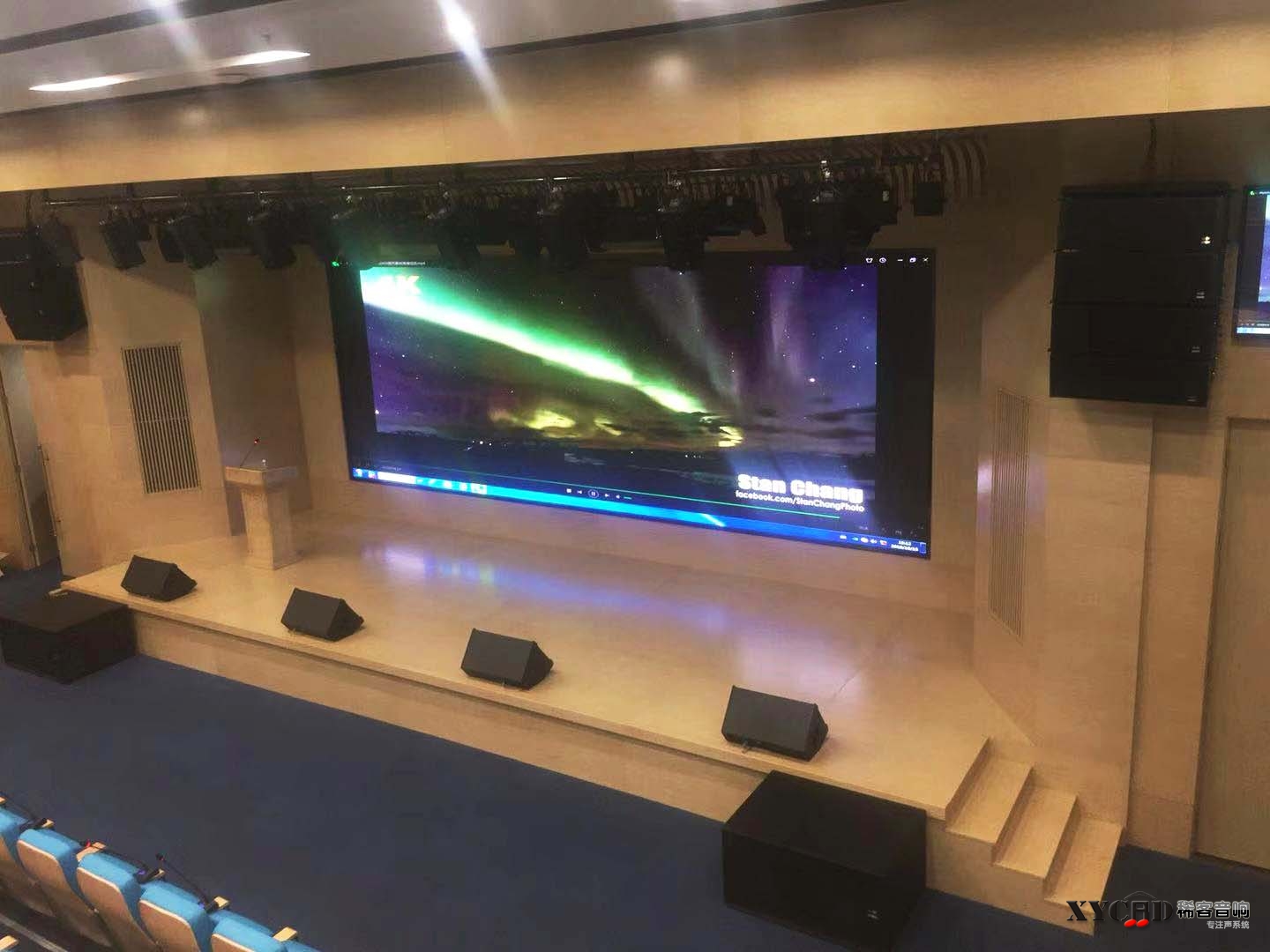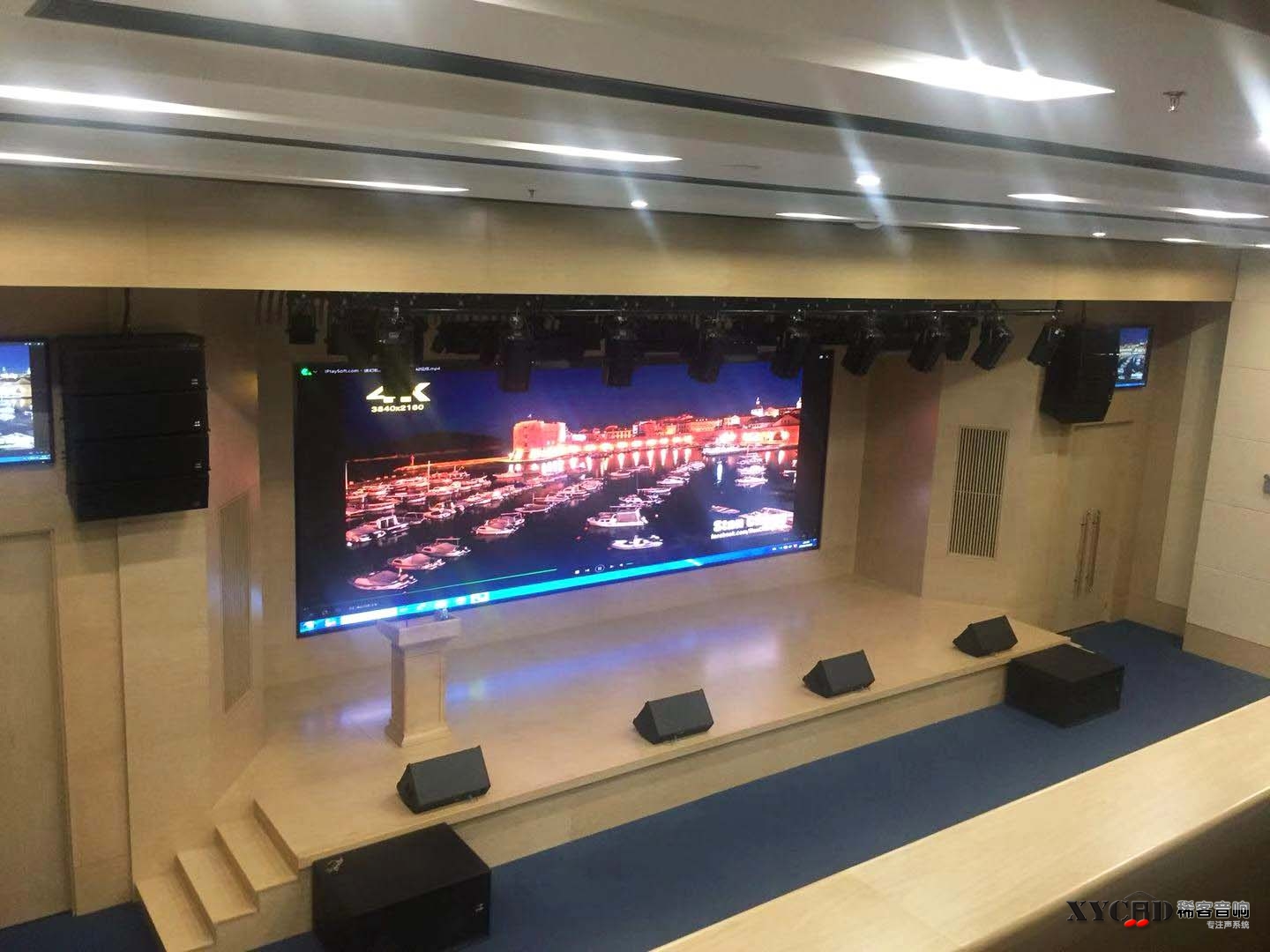 功能报告厅的主扩音箱采用XYCAD X-Array2103F×8,辅助采用Stage-112×4等