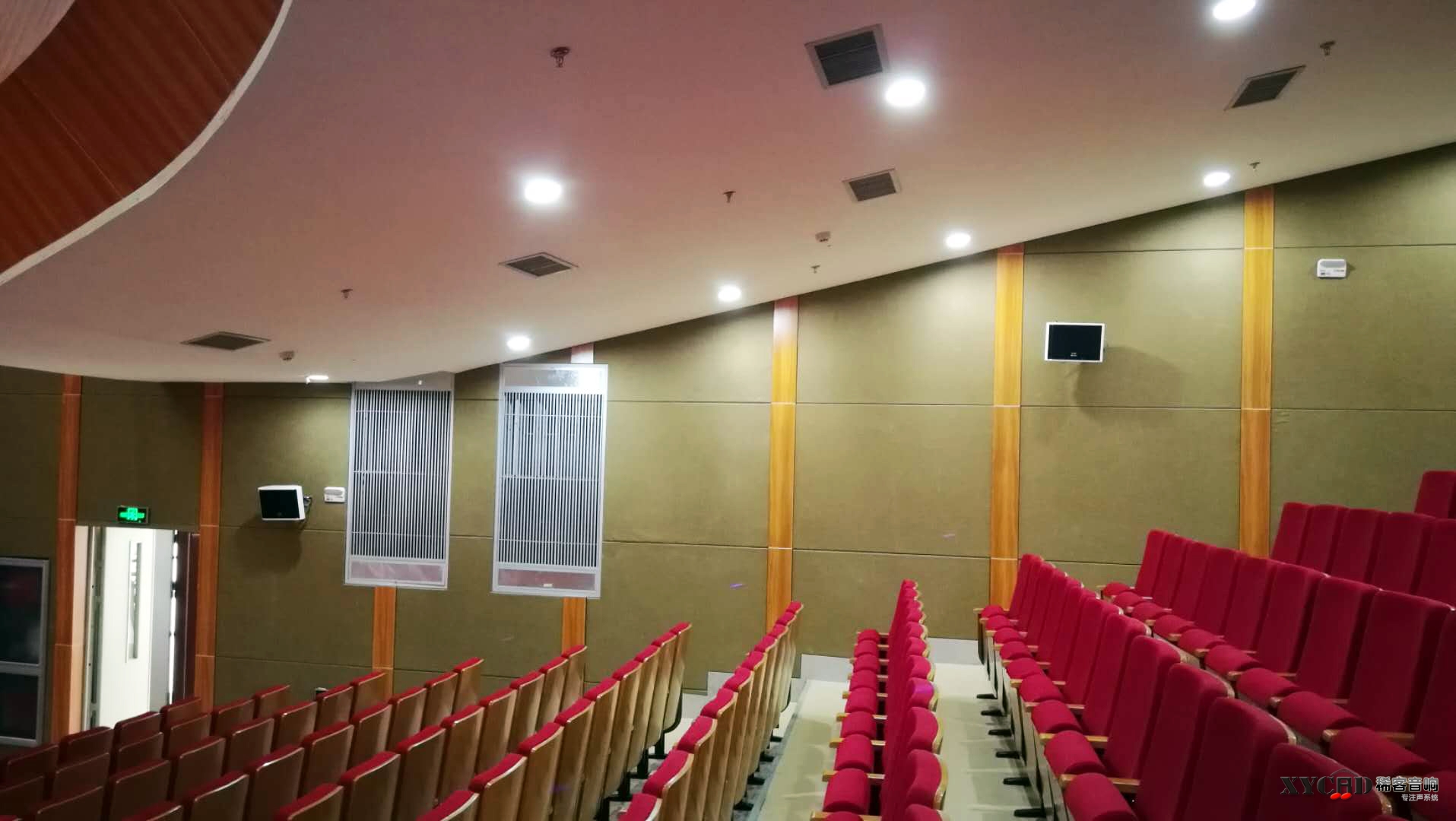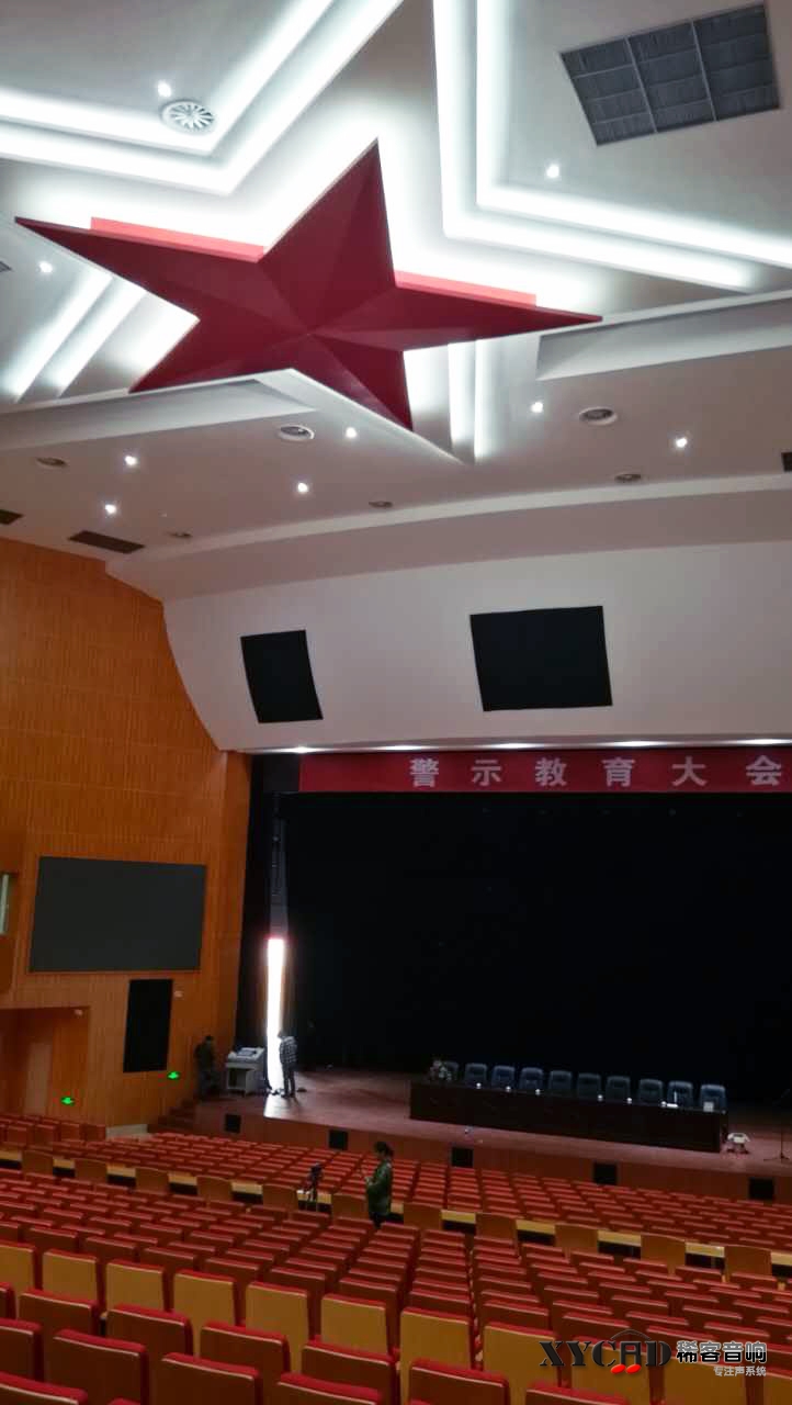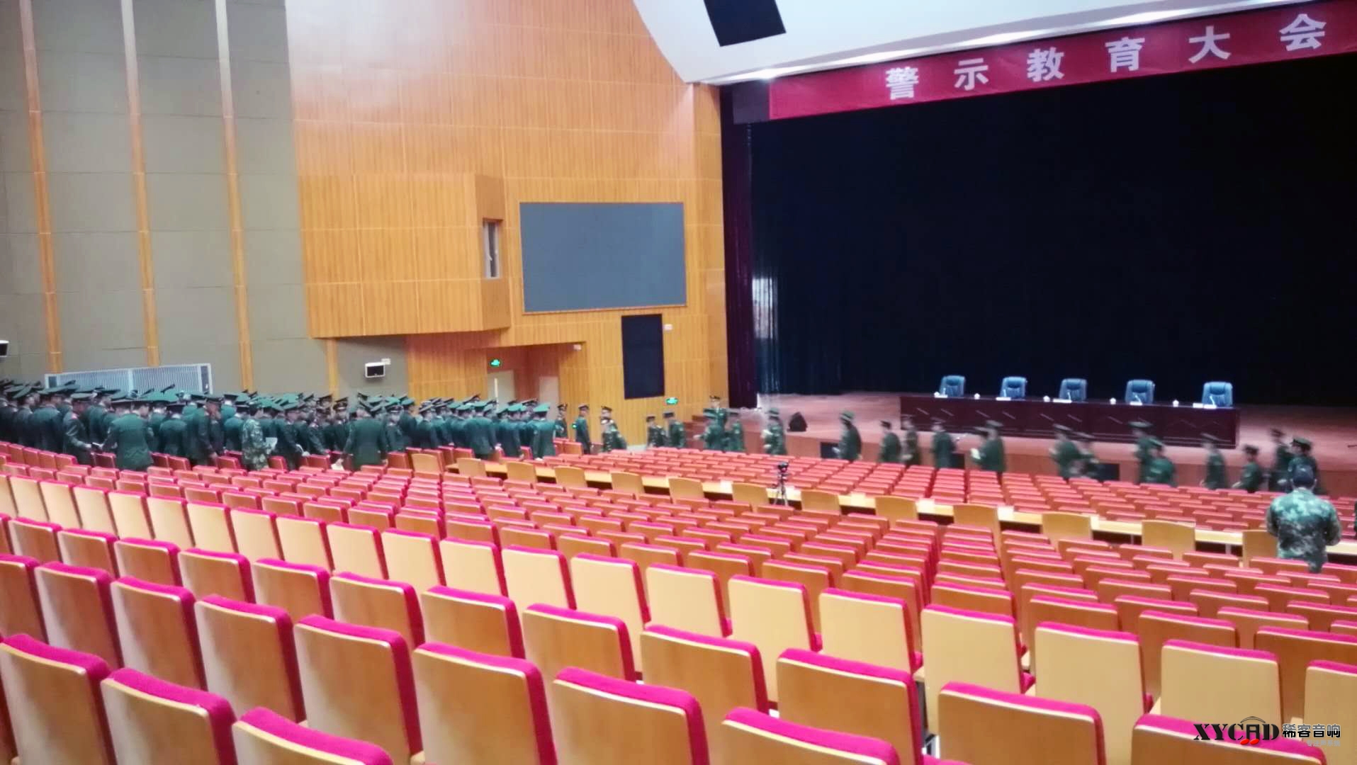 中国人民武警部队某士官学校新校区大讲堂采用稀客音响系统,超薄箱体与装修风格完美融合。
