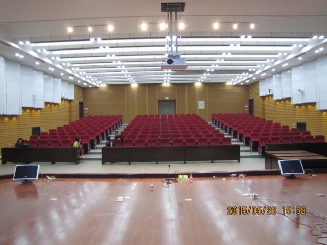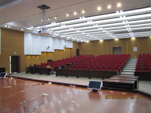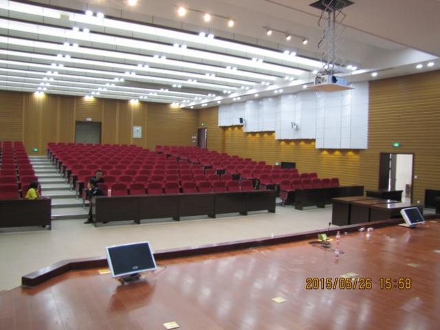 多功能厅总面积约为500㎡左右,阶梯式座椅布局。该厅堂用了6只WaferyⅡ-210作为主扩,4只WaferyⅡ-412SUB作为超重低音,4只WaferyⅡ-110作为后场补声,2只WaferyⅡ-110作为舞台返听音箱。全套的超薄设备与该厅堂的装饰风格融为一体,相互点缀,充满科技感。