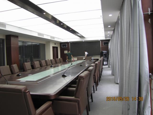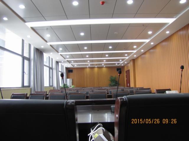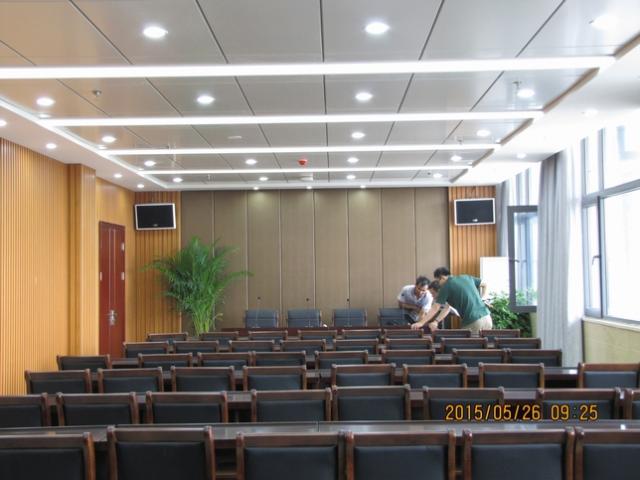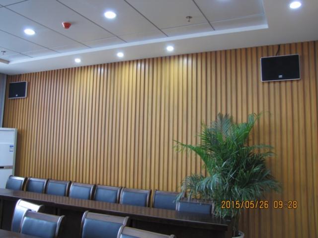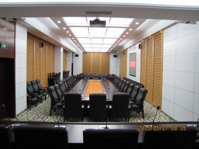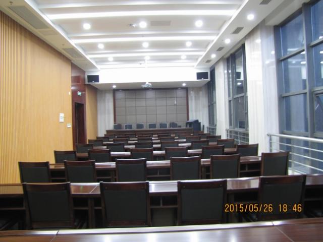 14层圆桌会议室与15层圆桌会议室面积相同为110㎡,都以语言扩声会议为主。该厅堂使用了2只WaferyⅡ-110作为主扩声,另外还有2只Flat-4作为后场的补声。经过精心调试,语言清晰度和可懂度非常高。