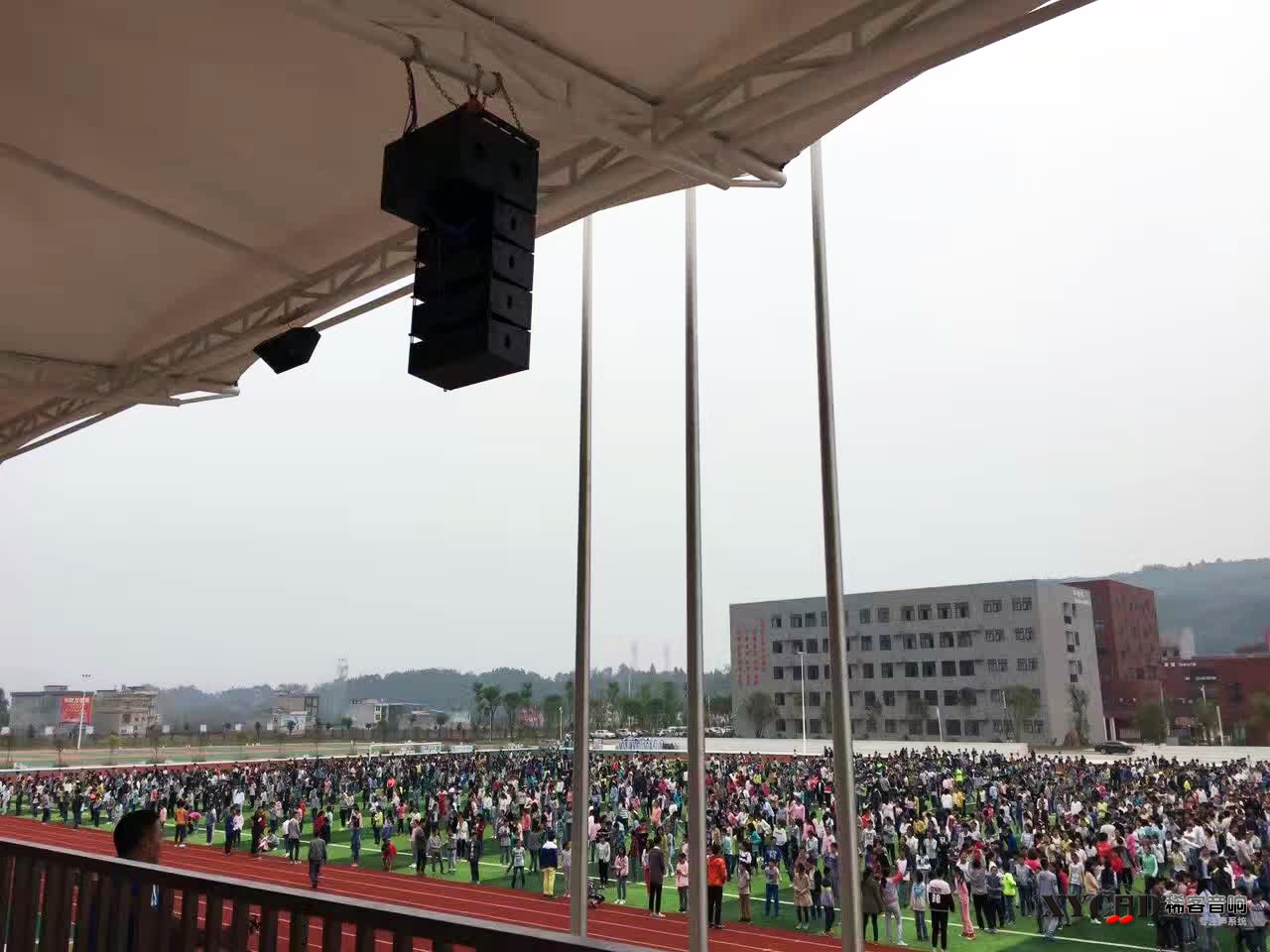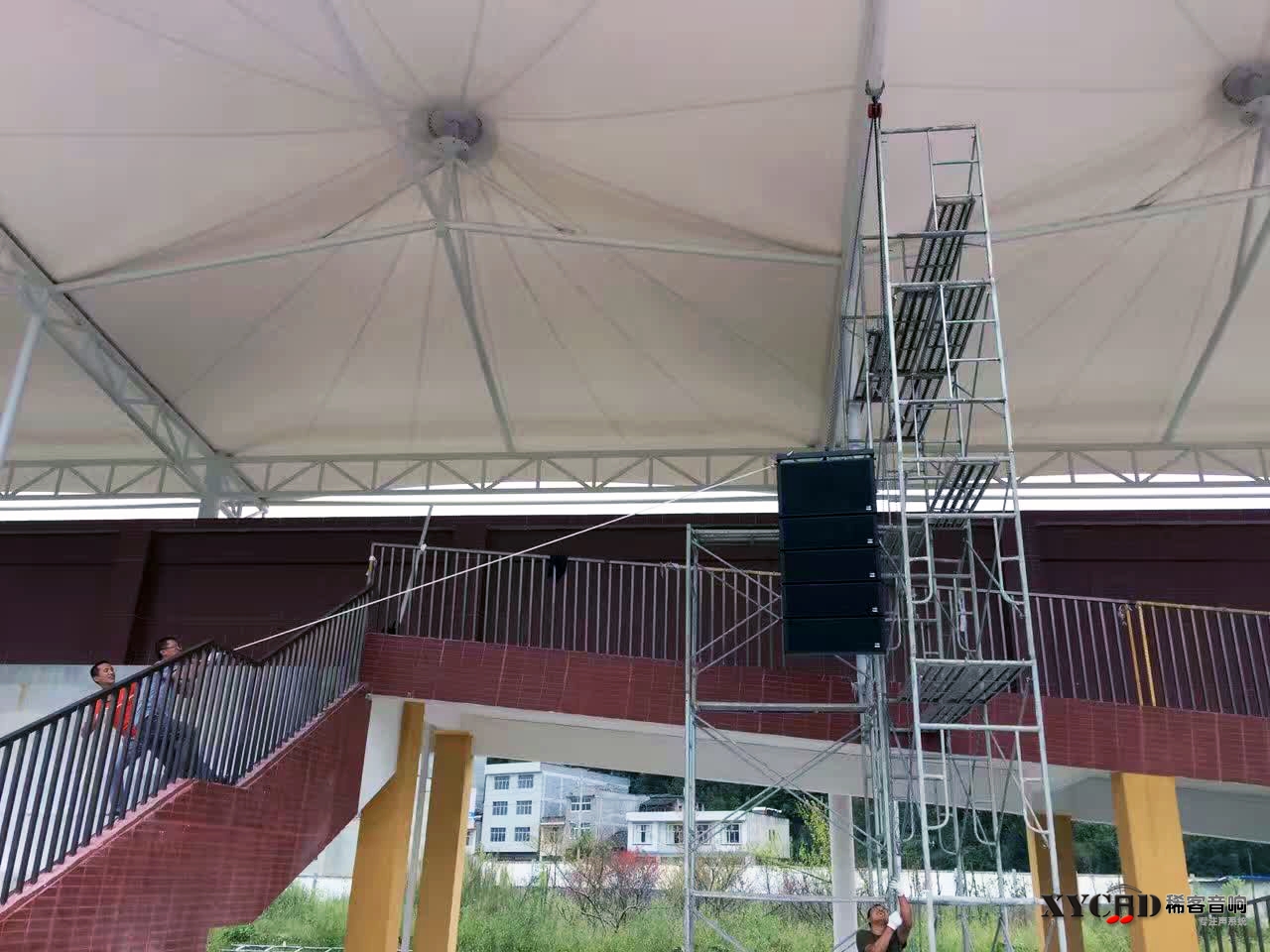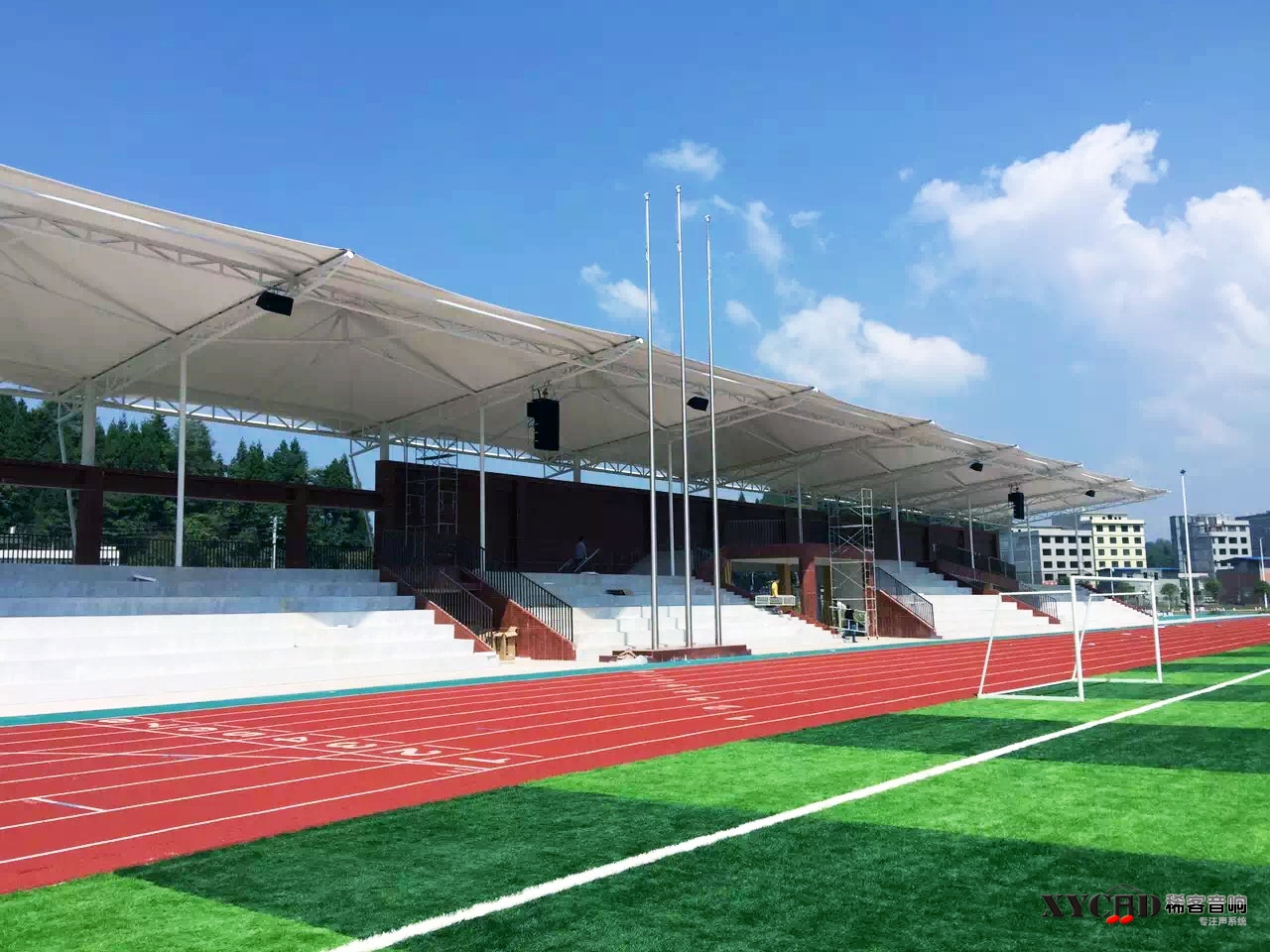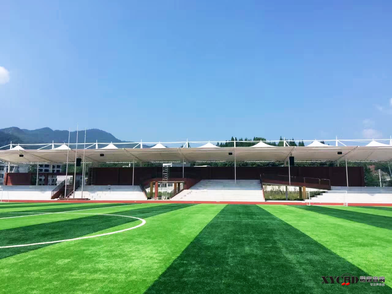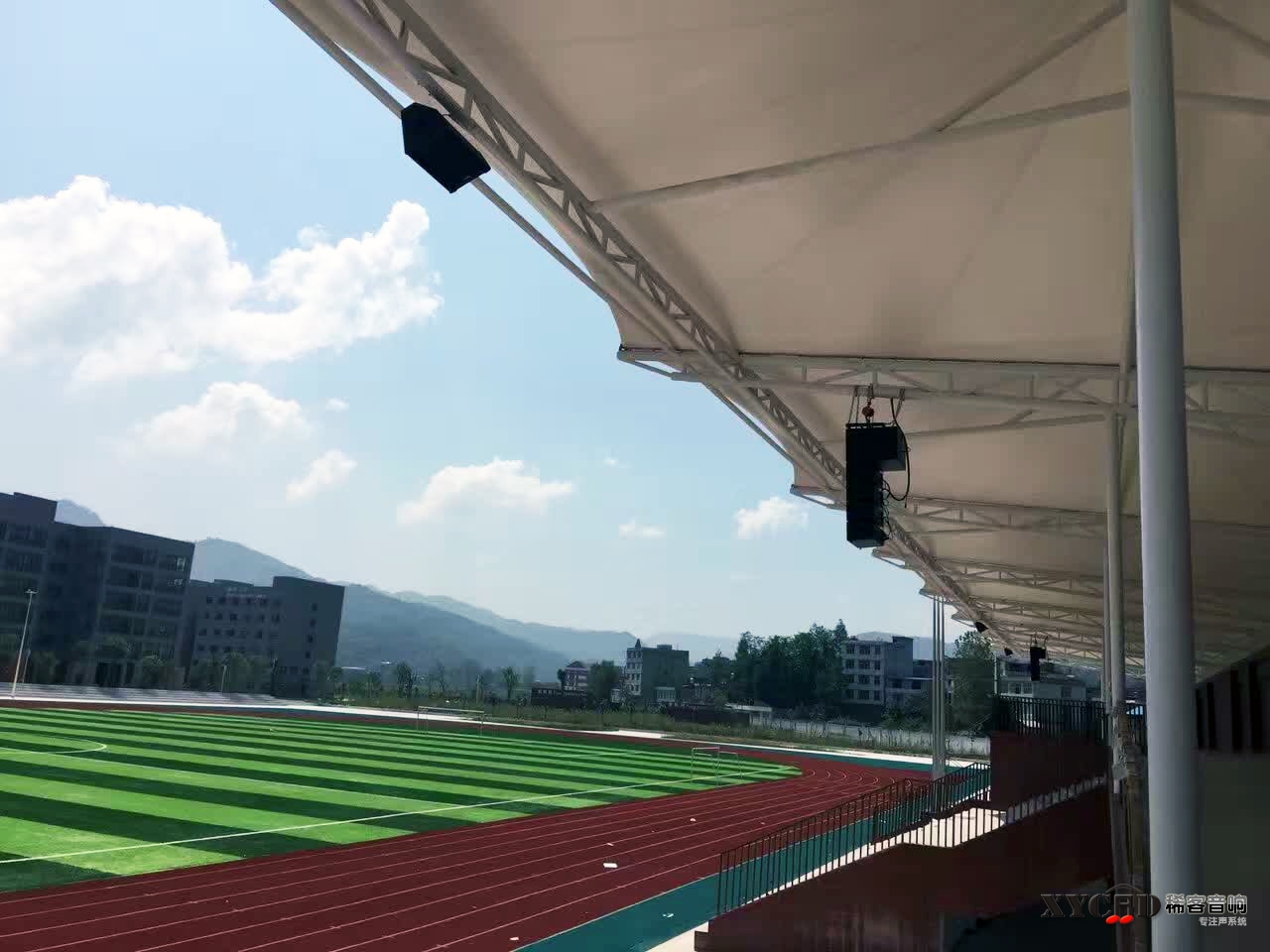 学校风雨操场主扩声采用稀客X-Array2103F线阵列顶级防水音箱,补声采用EK615系列防水音箱,功放采用稀客XN系列高端功放。