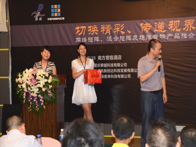 2012年7月20日,我公司联合重庆攀越科技有限公司在重庆南方君临酒店举办“切换精彩、传递视界”为主题的超薄音响产品、网络矩阵、混合矩阵内部推介会。