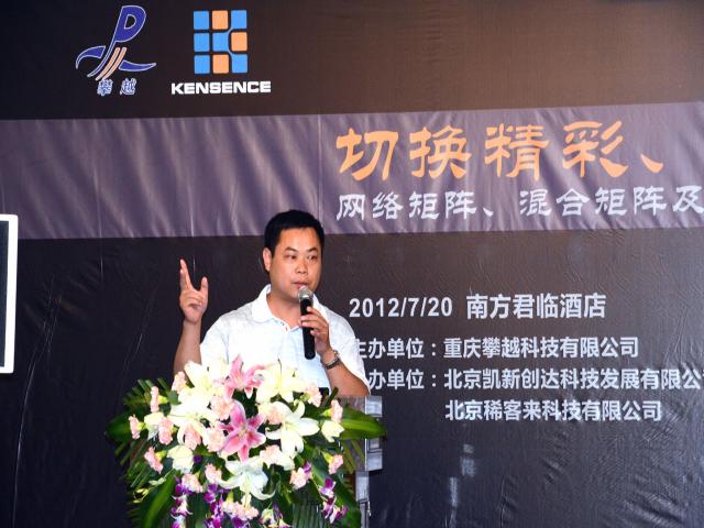 2012年7月20日,我公司联合重庆攀越科技有限公司在重庆南方君临酒店举办切换精彩、传递视界为主题的超薄音响产品、网络矩阵、混合矩阵内部推介会。 重庆攀越总经理粟总发表了开幕...